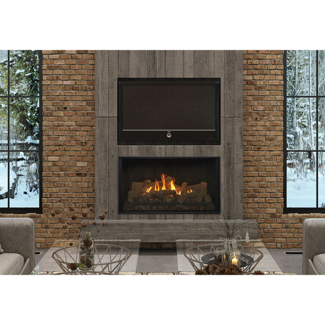 This landscape design series offers an awe-inspiring option for your home. A lower profile fireplace that will work with a large TV above the fireplace while still getting the look of a traditional fireplace.